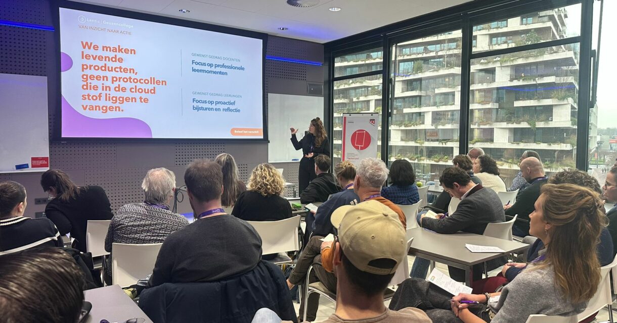 Tijdens de workshop van het Geuzencollege stond het waarborgen van het pedagogisch-didactisch handelen centraal. We lieten zien hoe gezamenlijke uitgangspunten niet alleen worden vastgelegd op papier, maar worden vertaald naar concrete en bruikbare producten voor de dagelijkse onderwijspraktijk. Voorbeelden hiervan zijn het Geuzen-lesmodel en de kijkwijzer voor intervisie tussen docenten. Door deze instrumenten samen met het team te ontwikkelen en cyclisch te evalueren, blijft de pedagogisch-didactische lijn zichtbaar, herkenbaar en levend in de klas.
